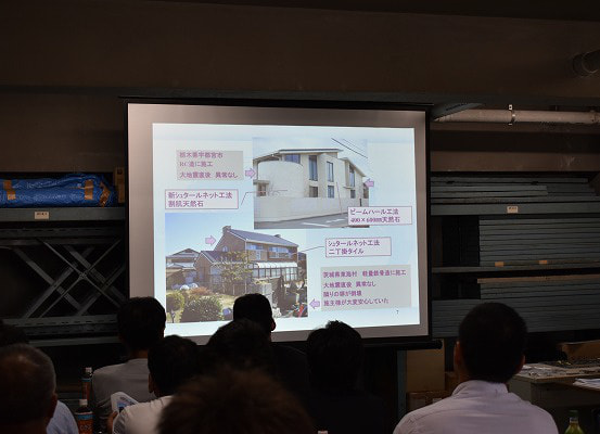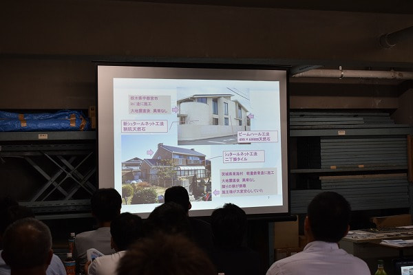 講習会は、ビームハール工法とは何か?の解説から始まり、施工マニュアルや施工例の画像を見ながら、ビームハール工法の特性や有利性、施工手順を学びました。