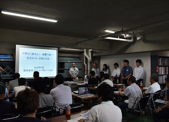 2019年6月8日(土)、弊社本社にて、KYタイル株式会社様のご協力により、ビームハール工法の講習会を実施致しました。